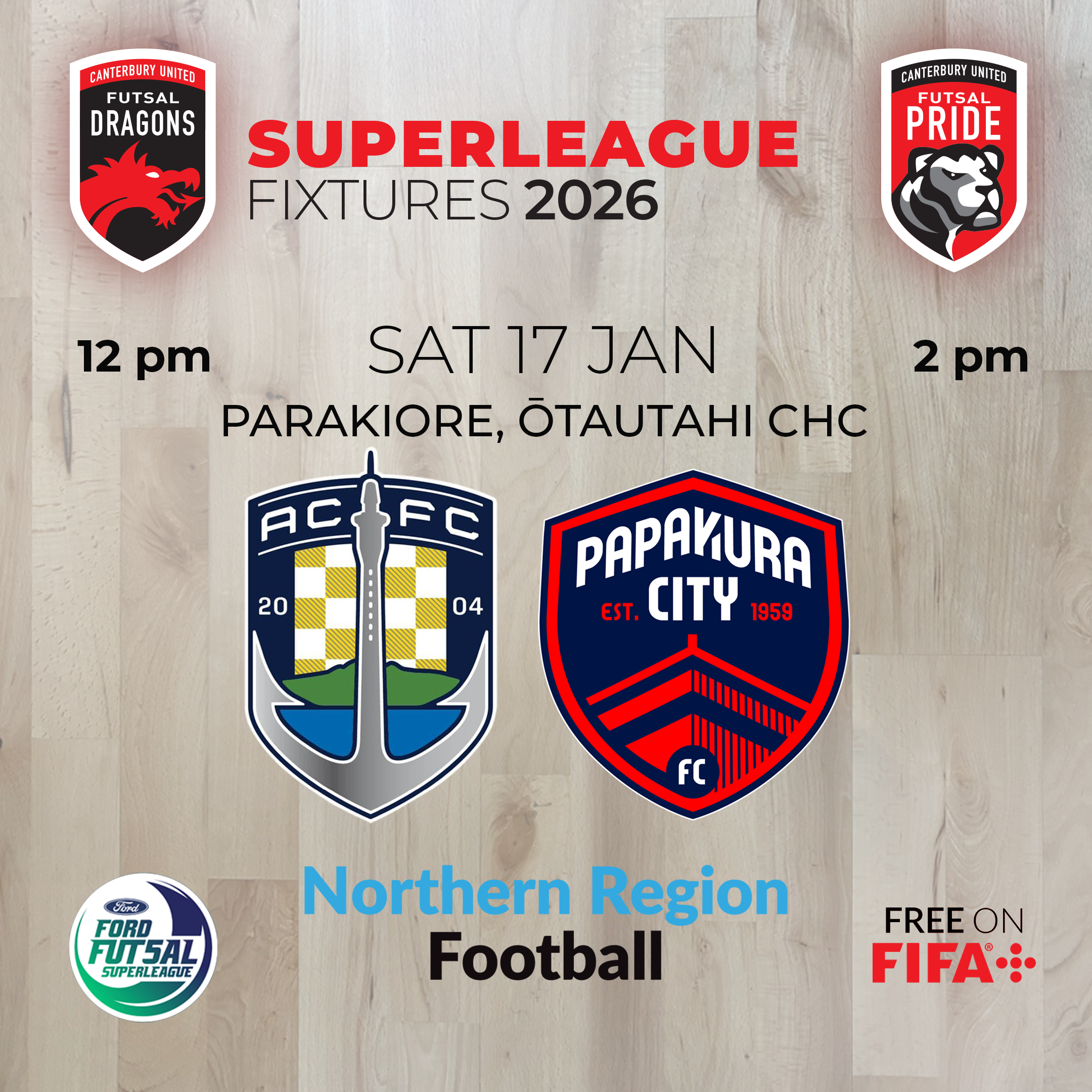 The Canterbury United Futsal Dragons & Pride are ready to start the Ford NZF Futsal Superleague at the brand new Parakiore Show Court. See you in the stands if you can or tune in for the live-action on FIFA+. Come along with your teammates & friends, enjoy the game, and celebrate the new year with us.